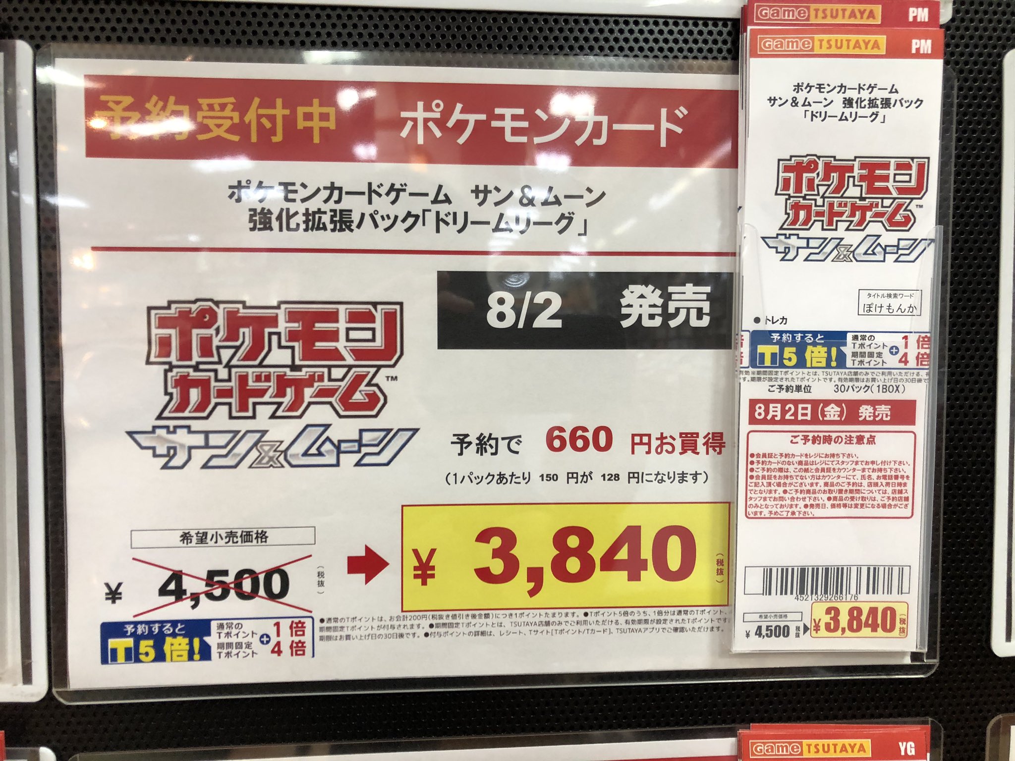 Tsutaya福生店 トレカ予約情報 8 2 金 発売 ポケモンカードゲーム サン ムーン 強化拡張パック ドリームリーグ 好評予約受付中 トレカは事前予約がオススメです 予約価格で販売 660円お買い得 Tポイントボーナス付与 ポケカ